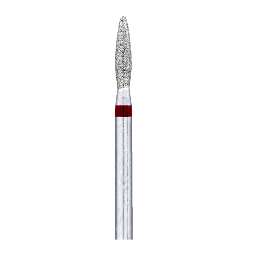 Фреза алмазная в форме пламя с закругленным концом, мелкой абразивности, красная полоска, диаметр рабочей части 2,3мм.