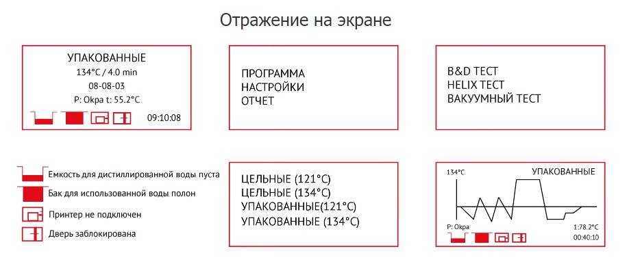 5. Автоклав не запускается, если уровень воды в резервуаре не соответствует норме, контролируется Min и Max уровня воды.