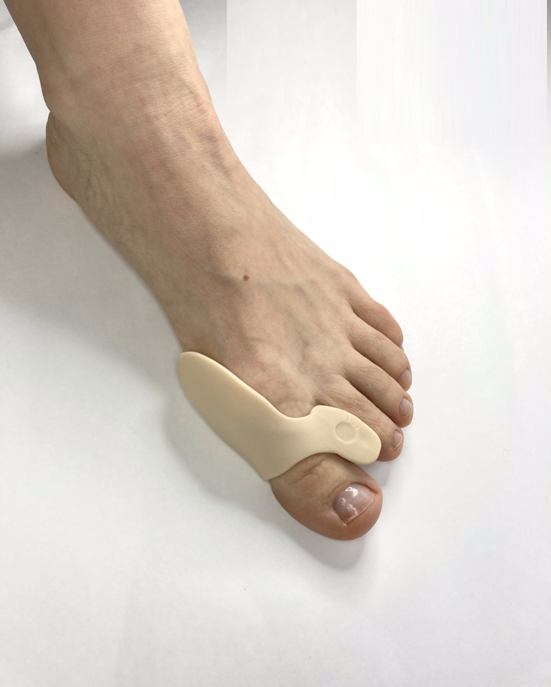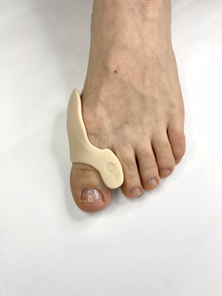 - отводит и фиксирует большой палец стопы в анатомически правильном положении, снижая нагрузку с сустава при ходьбе и уменьшая боль в костном выступе;