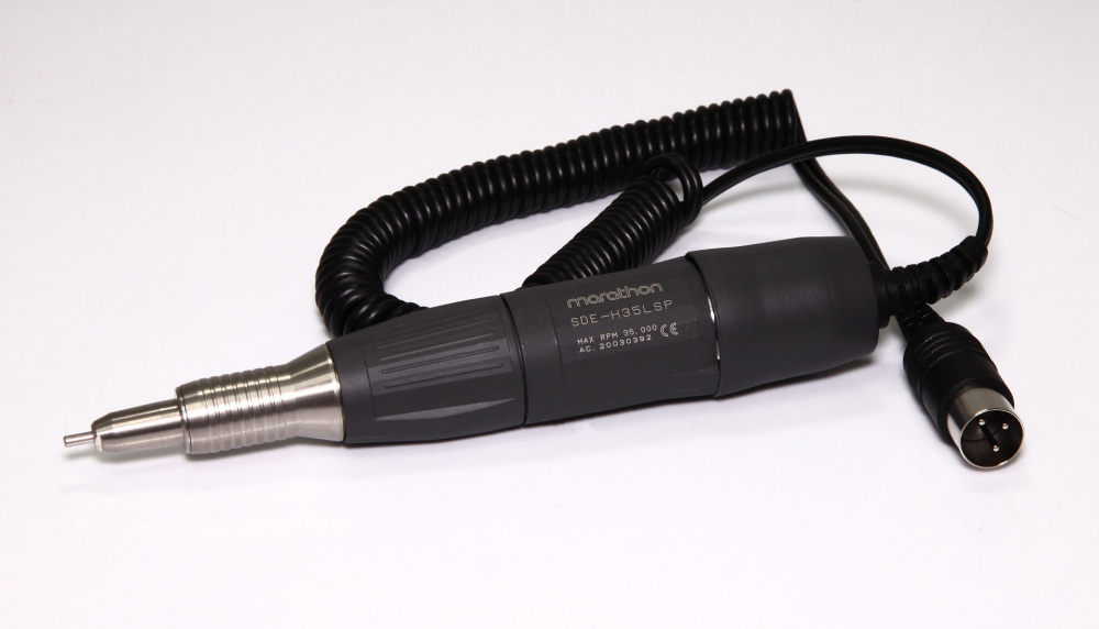 Микромотор-ручка H35LSP имеет приятный дизайн, удобно лежит в руке во время работы. Смена фрез и открытие цангового узла происходит легко и без лишних усилий. Большая часть ручки Marathon H35LSP выполнена из качественной нержавеющей стали. Этот микромотор имеет заявленный крутящий момент 3,2 NCm и на практике скорее подходит для маникюра и обработки искусственных ногтей, чем для педикюра и обработки стоп. Однако и с этой задачей он справится.