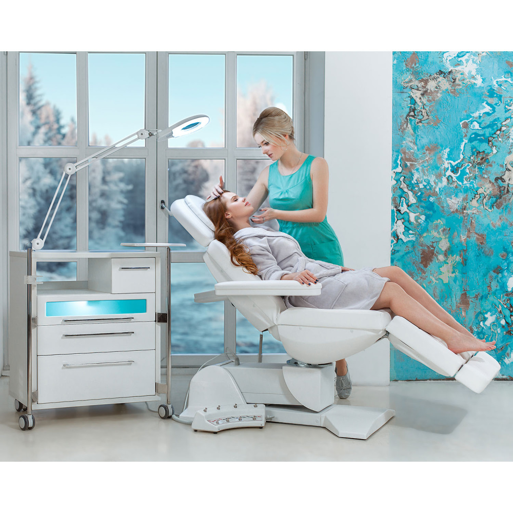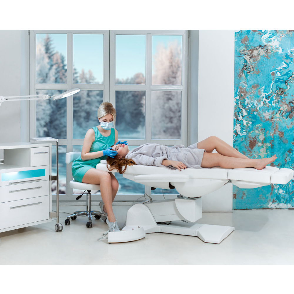 Косметологическое кресло СИГМА 3.0 оснащено тремя независимыми электромоторами для подъема-опускания сидения и спинки, изменения угла наклона сидения. Подъем ножной частью осуществляется при помощи пневмопривода. Кресло можно дополнить поворотным механизмом со стопорами и механизмом фиксации, поэтому мастер может легко поворачивать его на 270 ° и фиксировать, располагая клиента максимально удобно для работы.