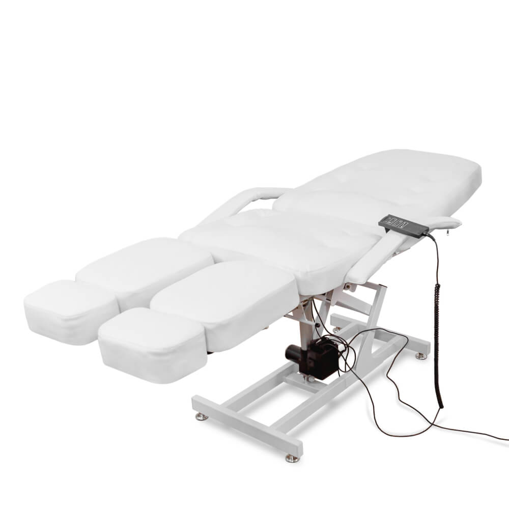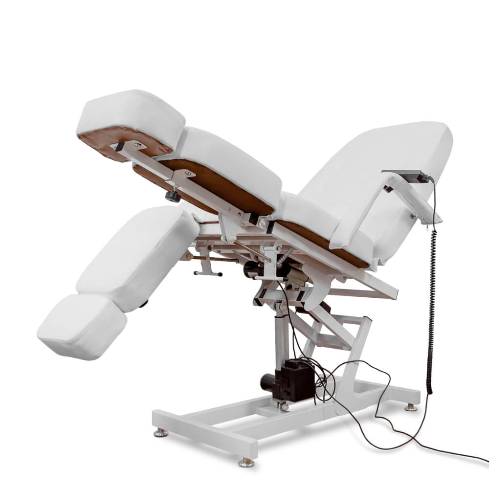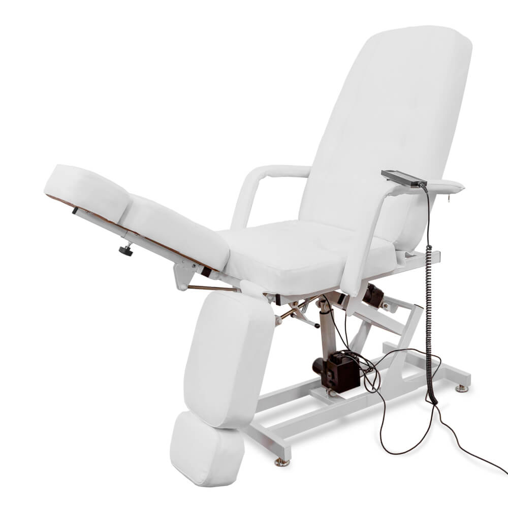 Педикюрное кресло имеет 3 мотора: регулировка наклона спинки, высоты кресла и изменение угла наклона сидения осуществляется при помощи электропривода.