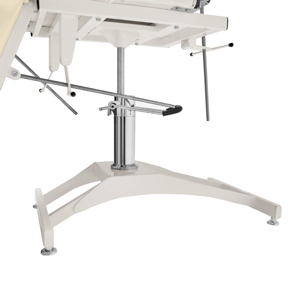 Регулировка угла наклона спины и ног, механическая. Усилены узлы крепления всех отклоняющихся частей каркаса (спина и ноги). Ножные части прикреплены к специальным металлическим держателям, которые в свою очередь прикреплены к основанию кресла. В отличии от других моделей, такое решение делает данный ответственный узел более прочным и долговечным и позволяет осуществлять подъема ножной части вверх более 1,1 м. Все крепления выполнены на винтовых соединениях. Особо усилен механизм удлинения пяточной части, выдвигается на большую длину и составляет 20 см.