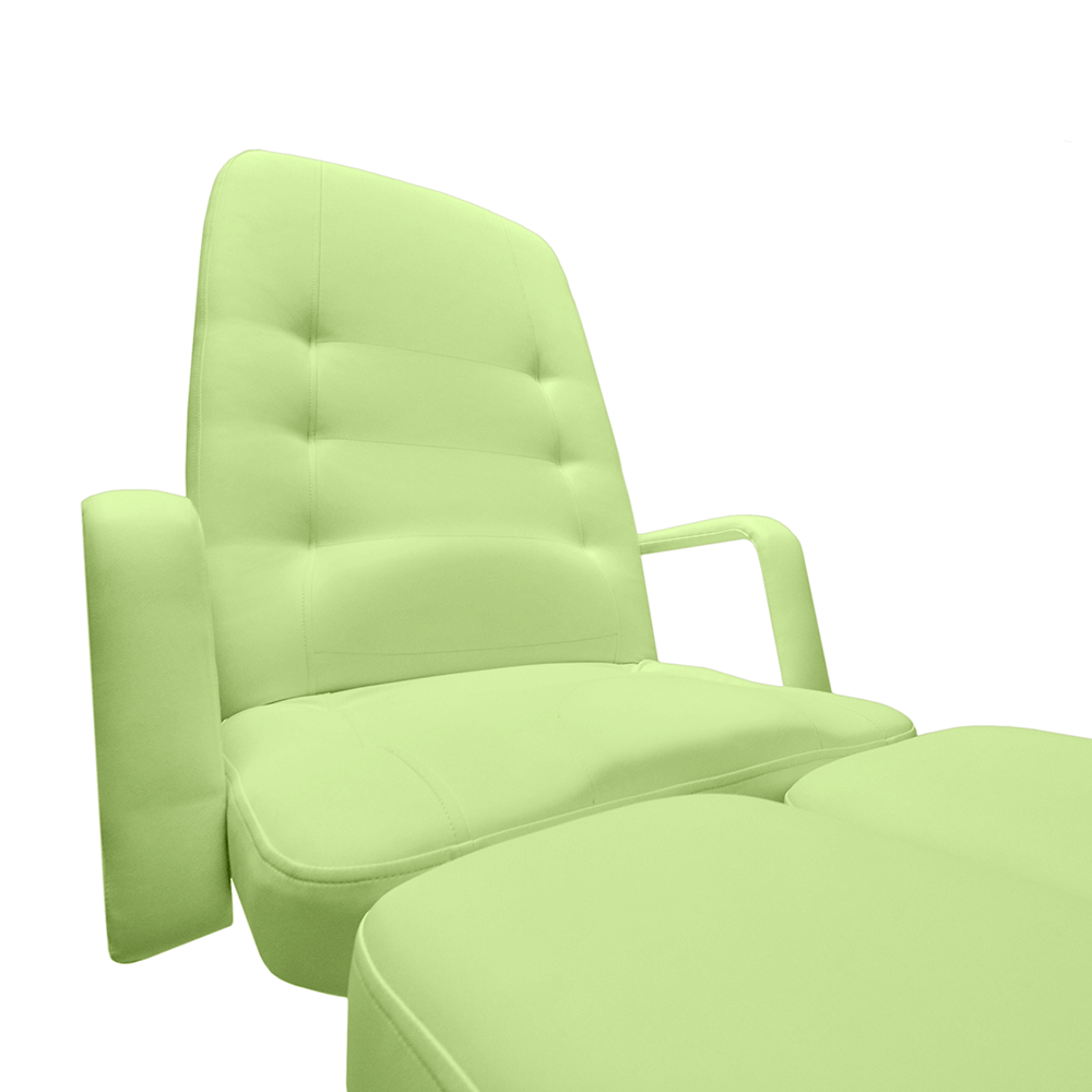 Кресло оборудовано удобными быстросъемными, складными подлокотниками. Спинная и ножные части имеют стопорные механизмы, позволяющие отрегулировать и установить нужный угол наклона.