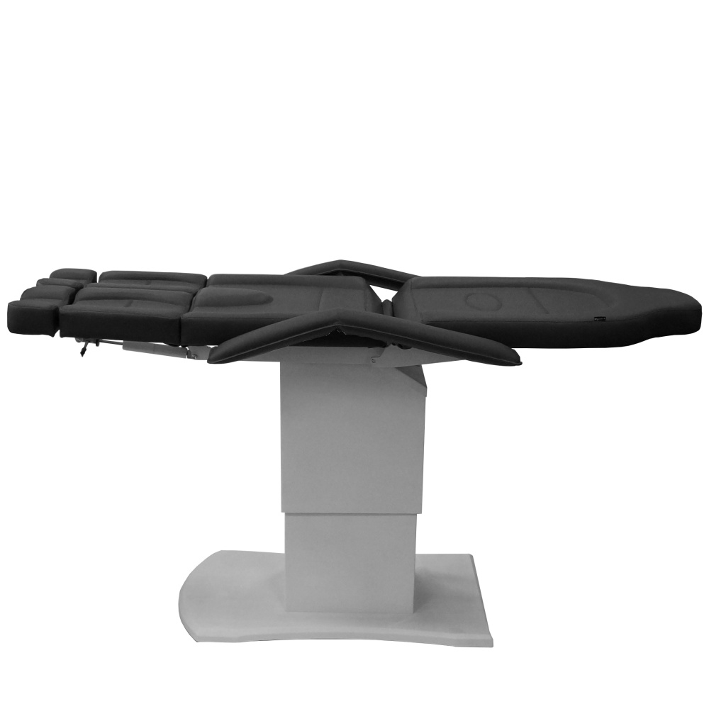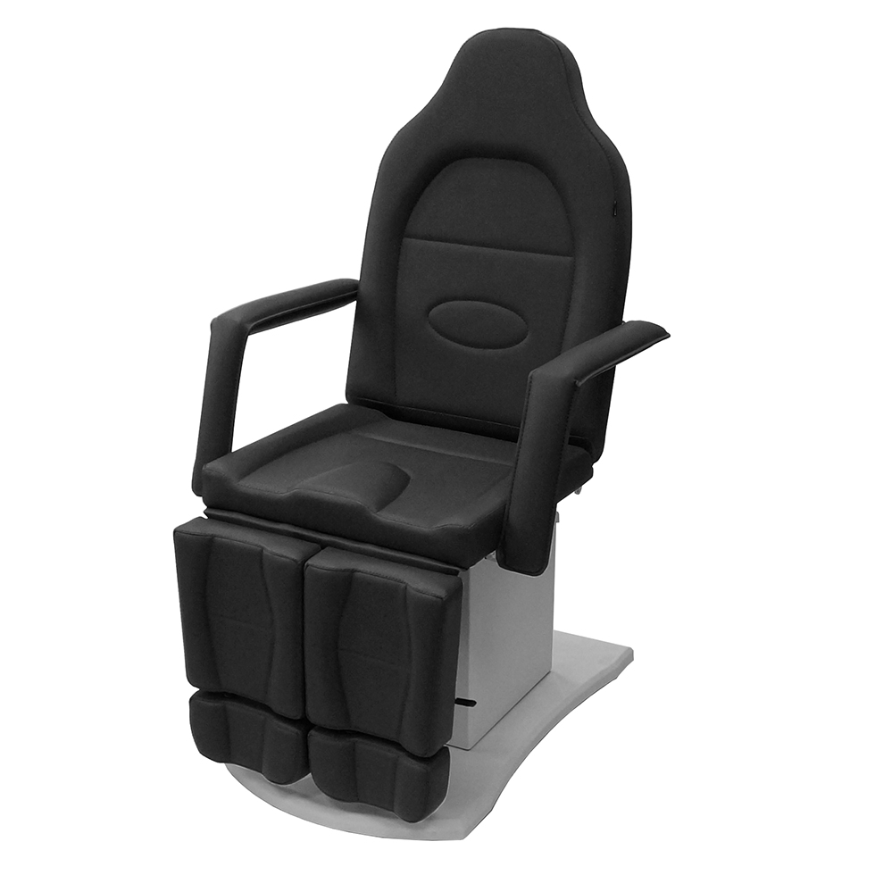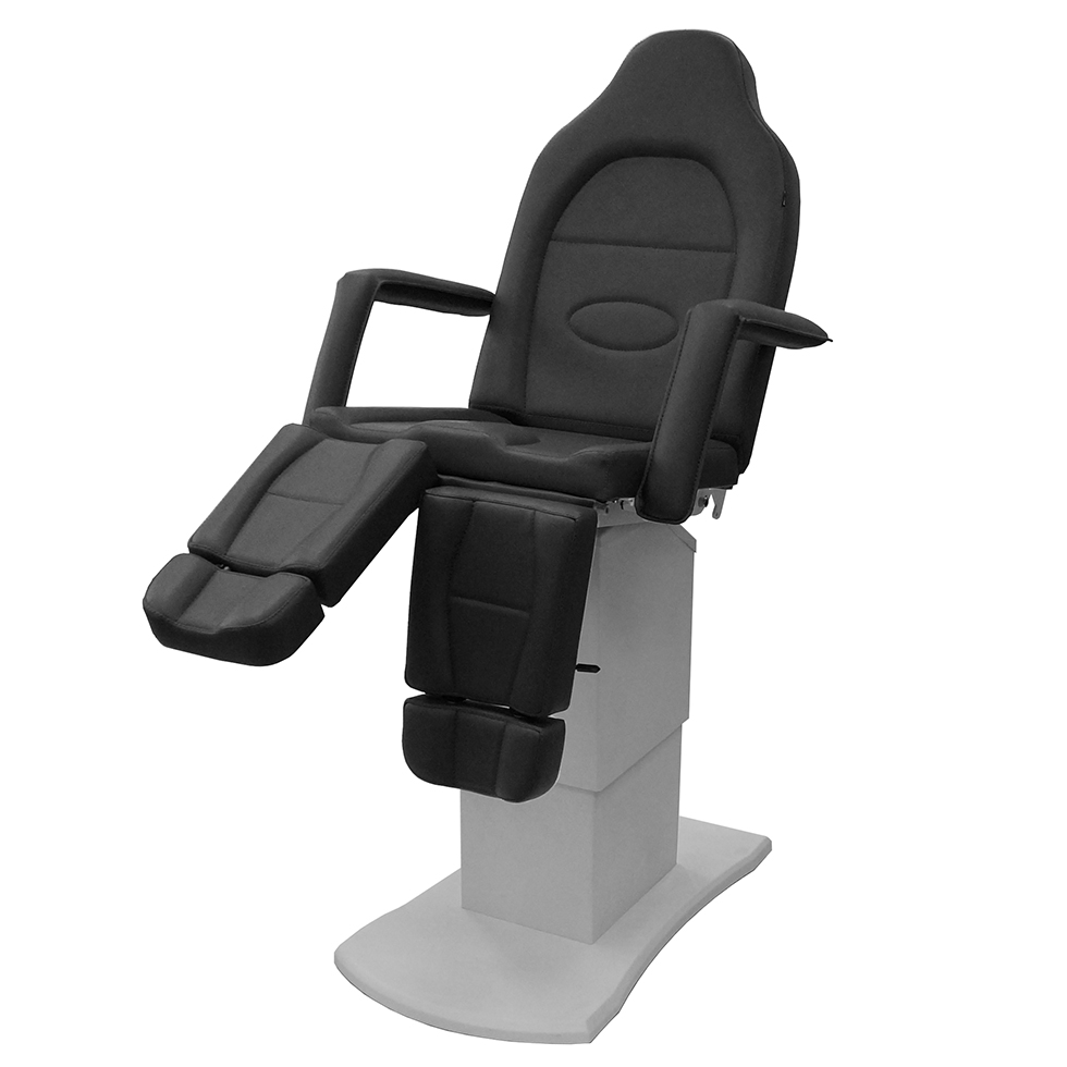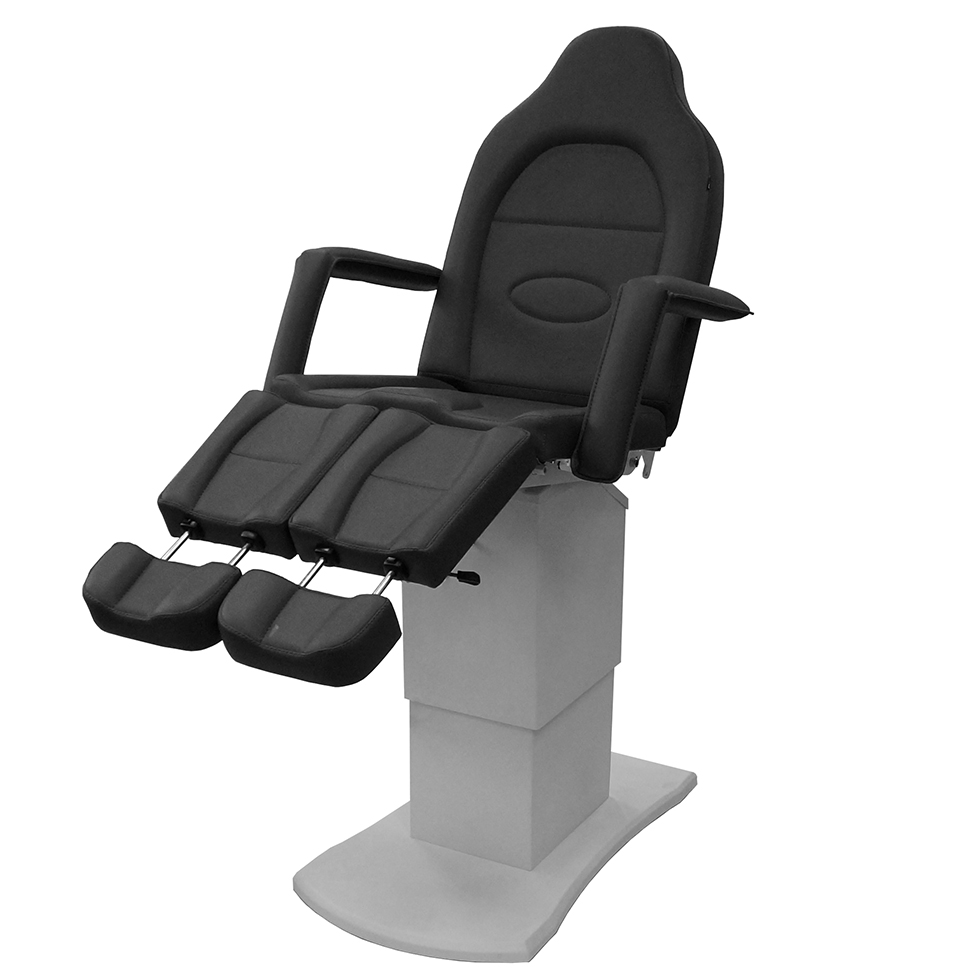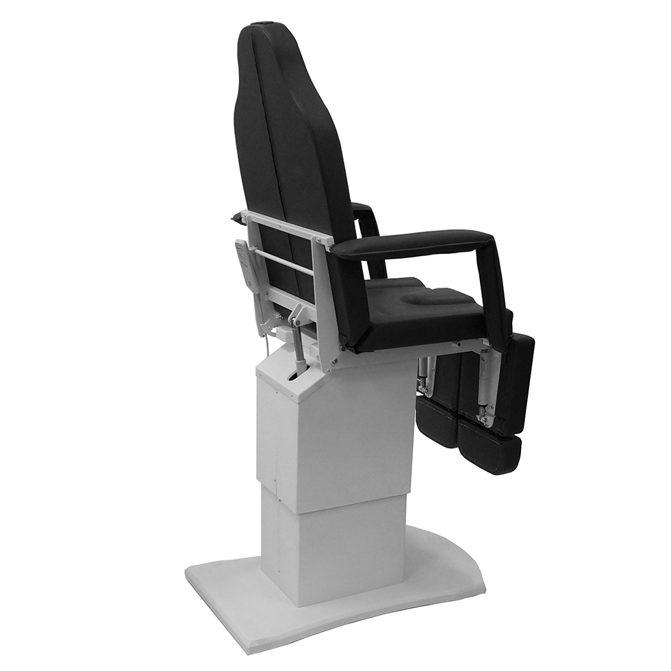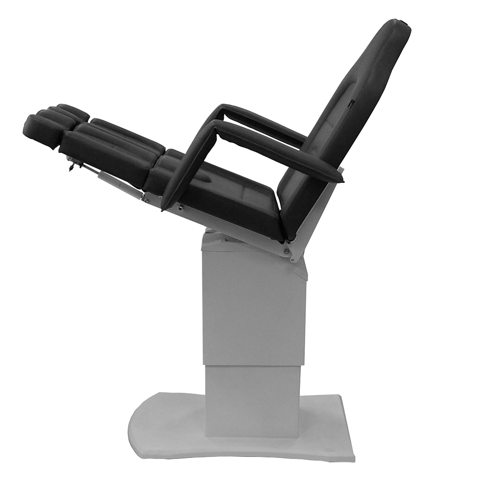 Педикюрное кресло оснащено тремя электромоторами, обеспечивающими регулировку высоты, угла наклона спинки и угла наклона сиденья. Опоры для ног фиксируются при помощи газ-лифтов. Кресло легко раскладывается в горизонтальное положение, образуя ровную поверхность. Надежная конструкция системы подъема обеспечивает высокую устойчивость кресла даже при максимальной высоте. Управляется при помощи ручного проводного пульта. Дополнительно при производстве могут быть установлены различные опции.