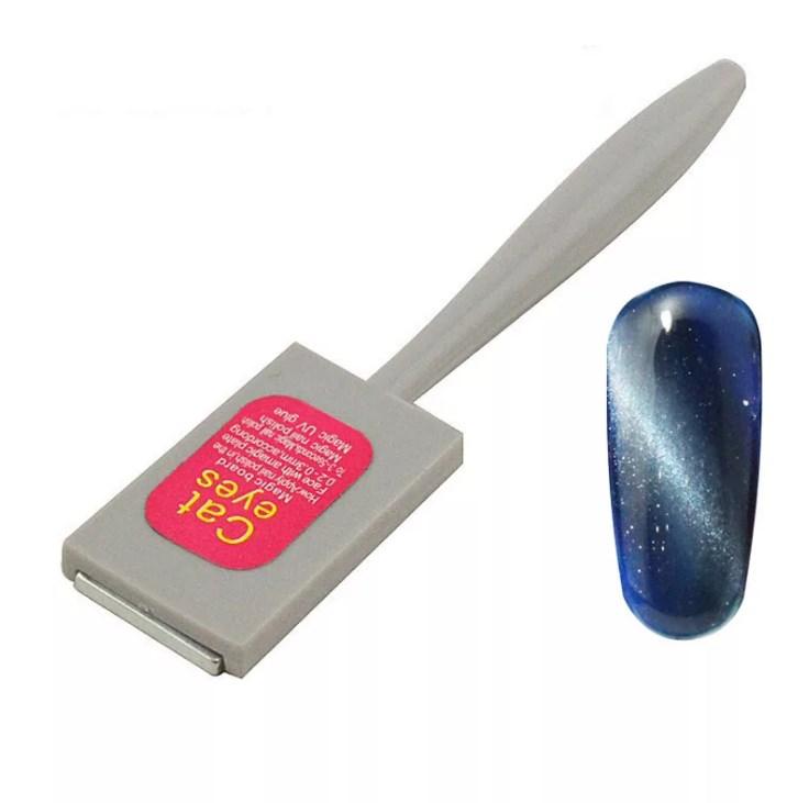 Супермощный большой магнит для гель-лаков «Кошачий глаз». Мгновенно собирает магнитный пигмент в требуемом месте, чем значительно экономит время на маникюр. Имеет удобную ручку, а небольшой размер магнита, позволяет мастеру контролировать процесс.