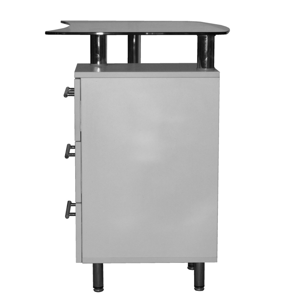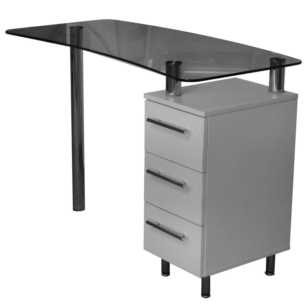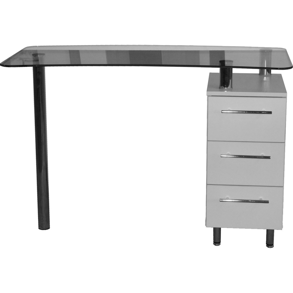 Стол для маникюра однотумбовый с тремя выдвижными ящиками, столешница из закаленного стекла. Материал для тумбы - ЛДСП.