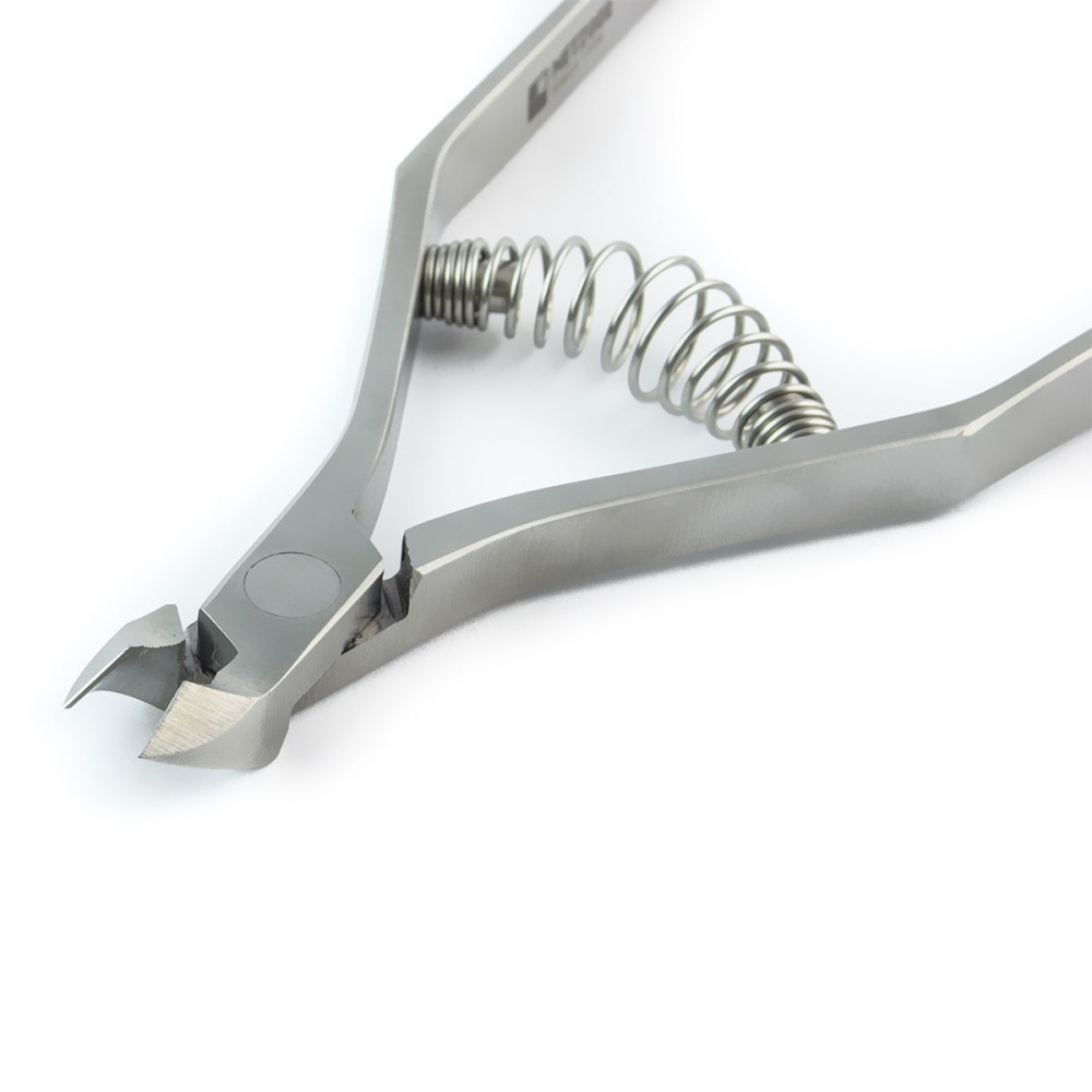 Кусачки эргономичны, долго не тупятся, просты и удобны в применении ‒ ими легко управлять во время выполнения процедуры. Особая форма кусачек и входящая в их конструкцию пружина обеспечивают мягкую и плавную работу, это позволяет избежать травм и порезов.