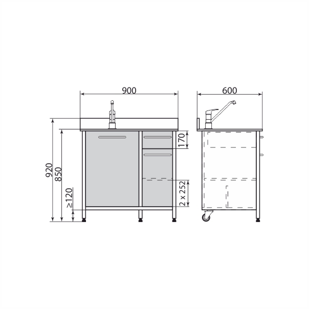 Тумба с мойкой 900*600*850 мм, 2 секции, PR-3-011-06