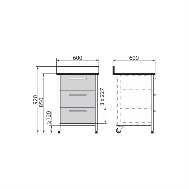 Тумба 600*600*850 мм, 3 ящика, PR-3-009-02