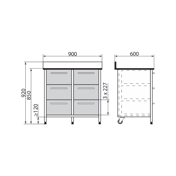 Тумба 900*600*850 мм, 2 секции с ящиками, PR-3-009-05