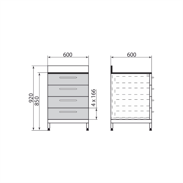 Тумба модульная 600*600*850 мм, 2 полки, PR-06-010-22-т