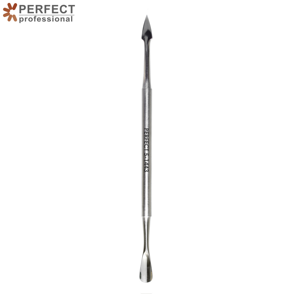 - одна рабочая сторона в виде вогнутой лопатки - позволяет бережно и эффективно отодвинуть кутикулу и околоногтевой валик, моделируя закругленную и ровную форму лунки ногтя;