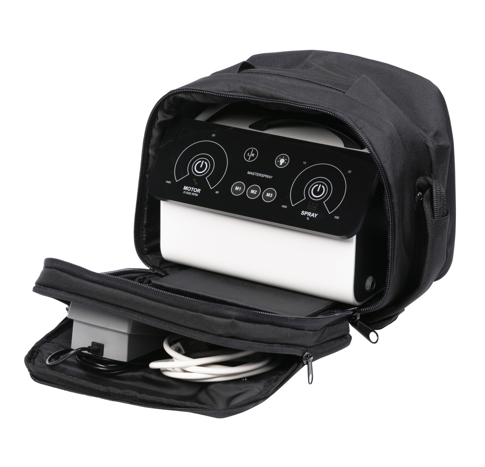 Для надежной транспортировки MasterSpray предусмотрена легкая прочная сумка с отделами для хранения прибора и аксессуаров.