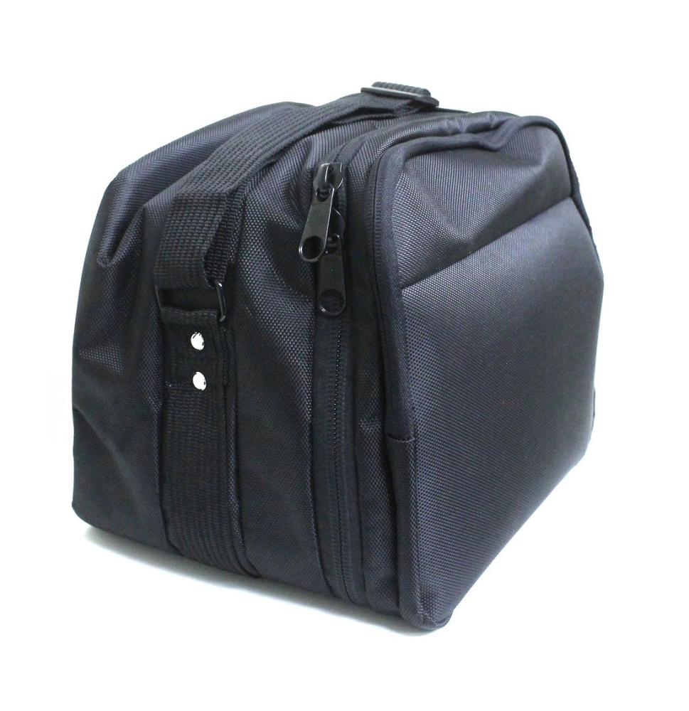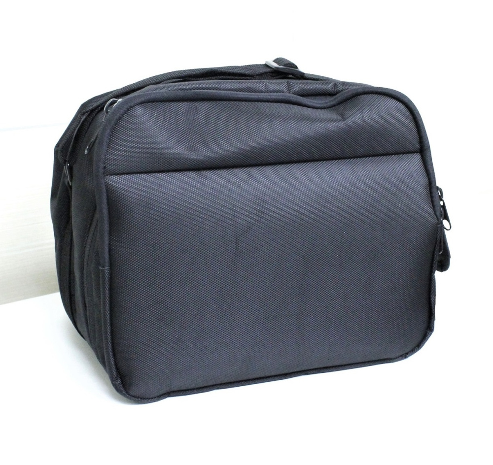 Изготовлена из полимерного материала, закрывается на молнию. Имеет 1 большой отдел для аппарата и 1 дополнительный отдел для аксессуаров с внутренним карманом на замке. Внутренее дно сумки оснащено жесткой основой для устойчивости аппарата. С внешней стороны, низ сумки обшит плотным непромокаемым материалом для того, чтобы ее удобно было очистить от загрязнений.