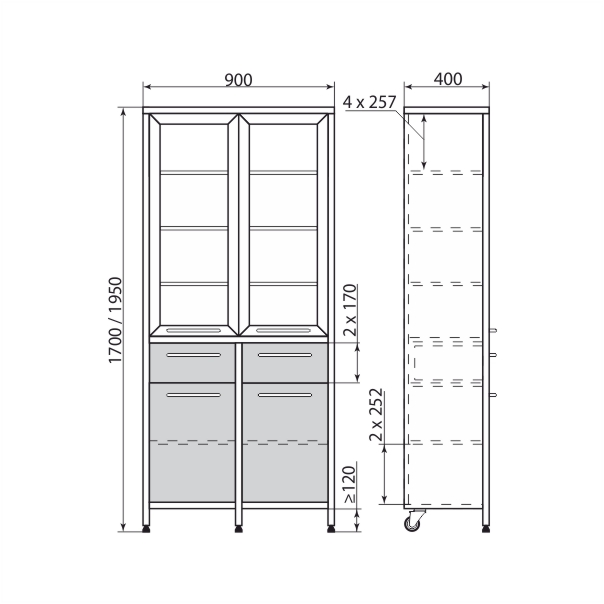 Шкаф-витрина со стеклянными дверями, 900*400*1950 мм, PR-3-001-17