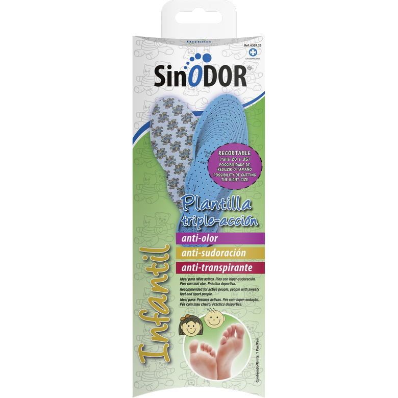Перфорированные стельки из латексной пены с антимикробной пропиткой Preventol®, специально разработанные для детских стоп, обеспечивают тройное действие: