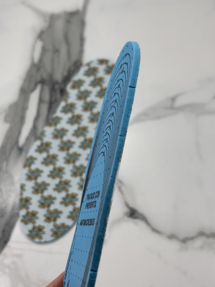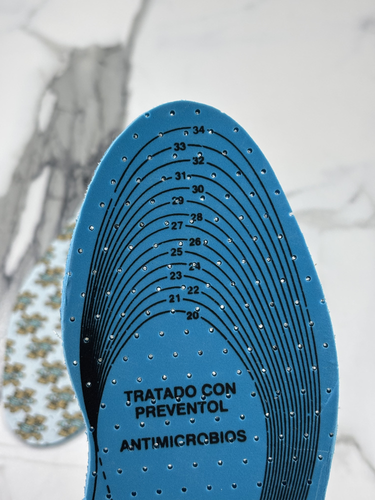 Перфорация в стельках улучшает воздухопроницаемость в обуви, уменьшая запотевание стопы и регулируя процесс терморегуляции.