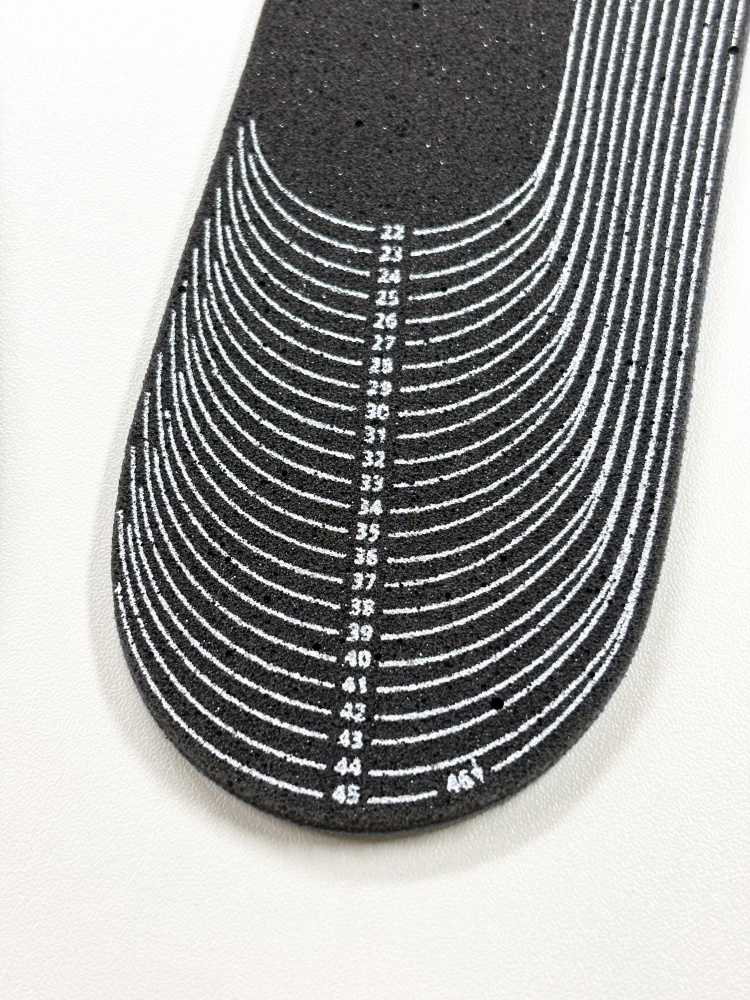 В соответствии с Вашим размером, стельки необходимо обрезать по линии размерной сетки.