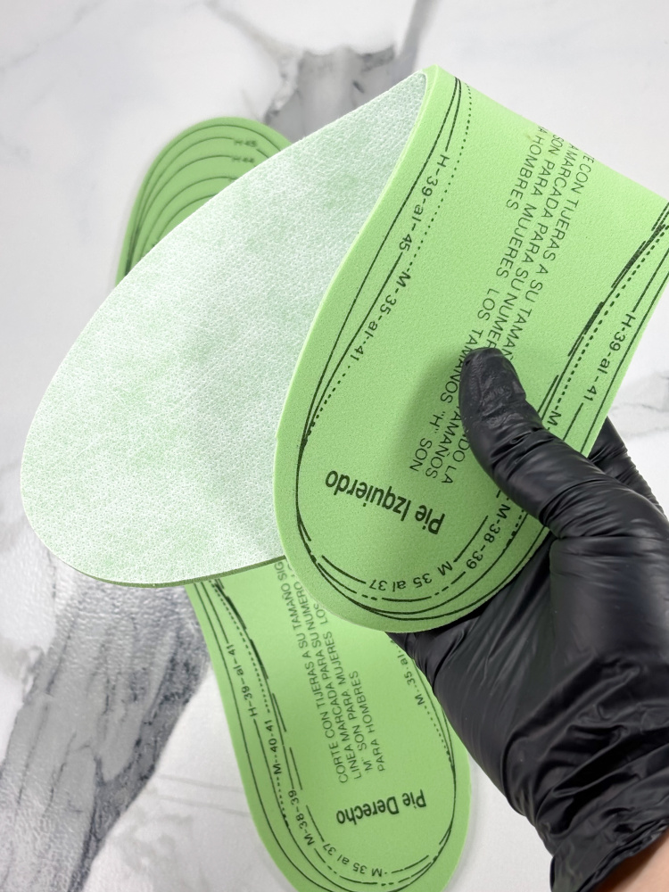 Поместить их в обувь нетканым покрытием вверх, при необходимости убрав «родные» стельки из обуви.