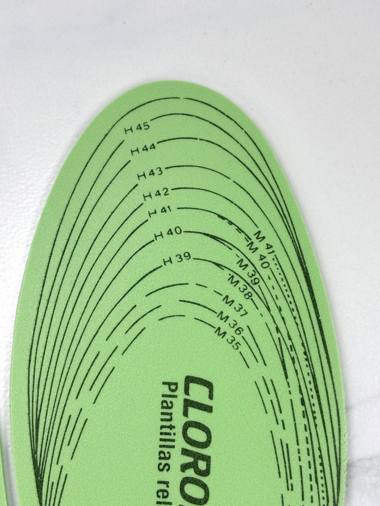В соответствии с Вашим размером, стельки необходимо обрезать по линии размерной сетки.