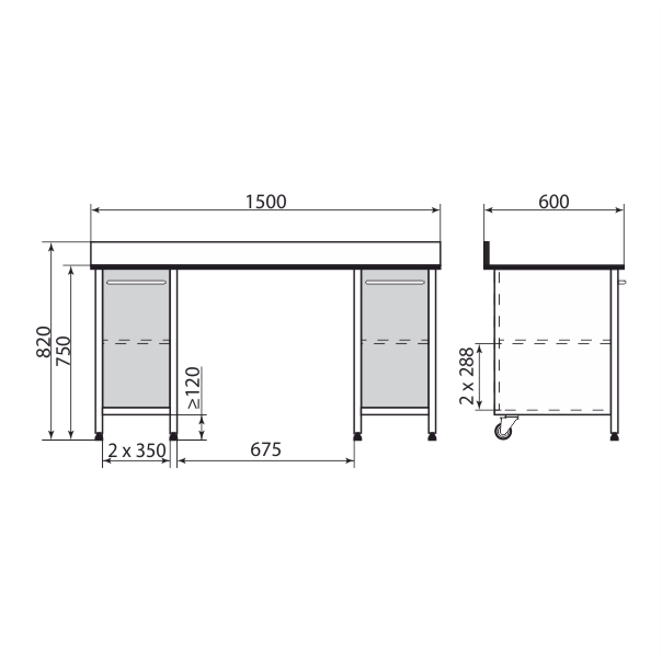 Стол с 2-мя тумбами, 1500*600*750 мм, PR-3-006-23