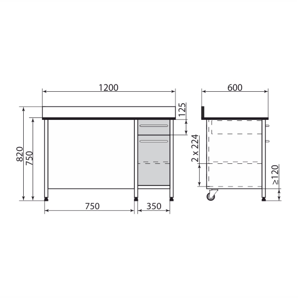 Стол с встроенной тумбой (правая), 1200*600*750 мм, PR-3-006-19