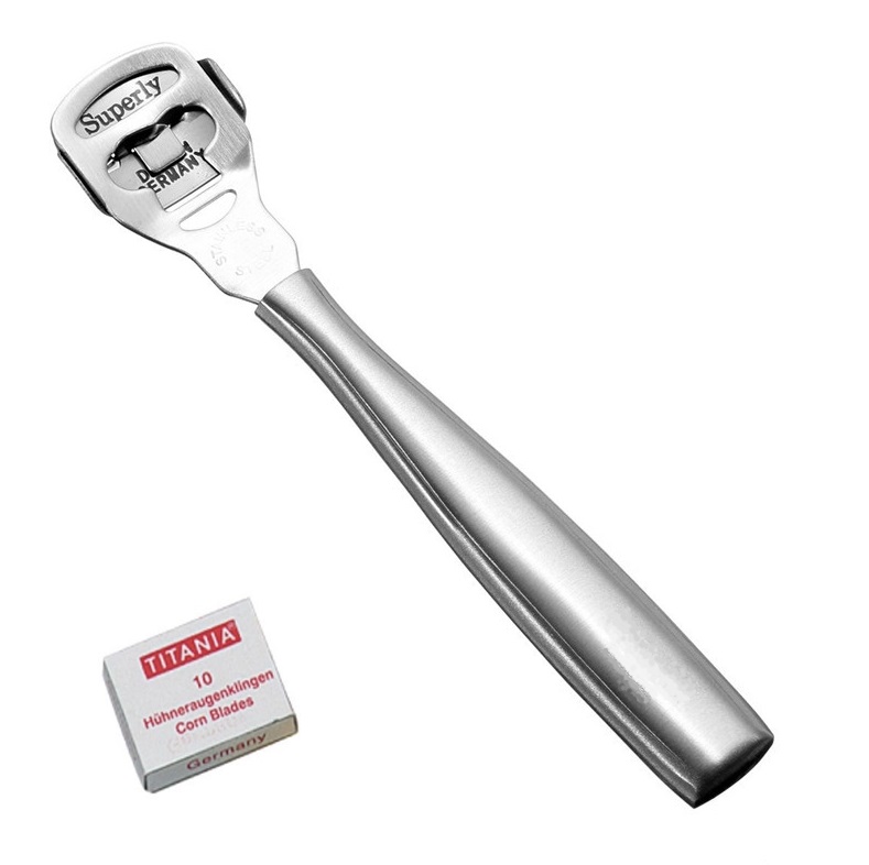 Станок для педикюра – инструмент, быстро избавляющий от сильно загрубевшей кожи. Используется для обрезного педикюра. Станок подойдет для удаления сухих мозолей и натоптышей. Инструмент с металлической ручкой имеет широкую рабочую зону для того, чтобы можно было захватить больший участок кожи. В результате процедура проходит быстрее.