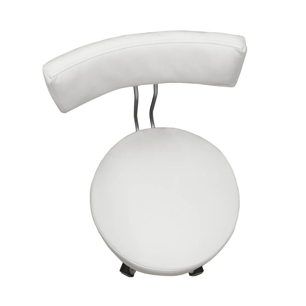 Металлическая основа спинки (выполненная из матового покрытия) и хромированный пятилучник облегченного типа, имеет круглую подножку, благодаря малому диаметру 44см, очень удобен для использования в малогабаритных рабочих зонах и позволяет без помех приблизиться к креслу.