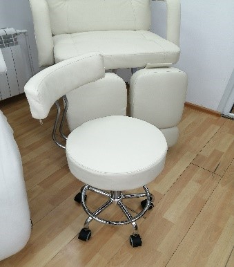 Имеет очень комфортное (толщина 10 см) и большое (Ф36 см) удобное сиденье. Сиденье и спинка изготавливается из качественной экокожи производство Турция.