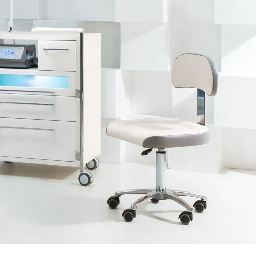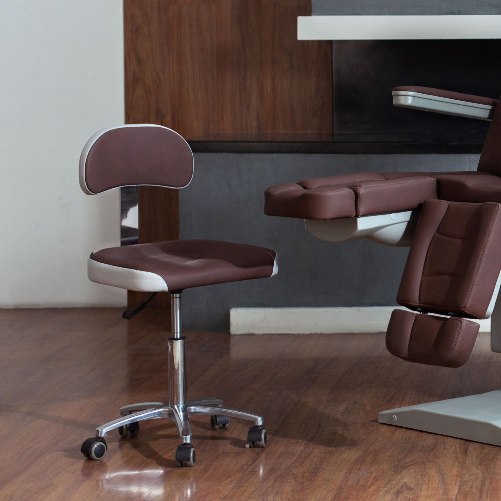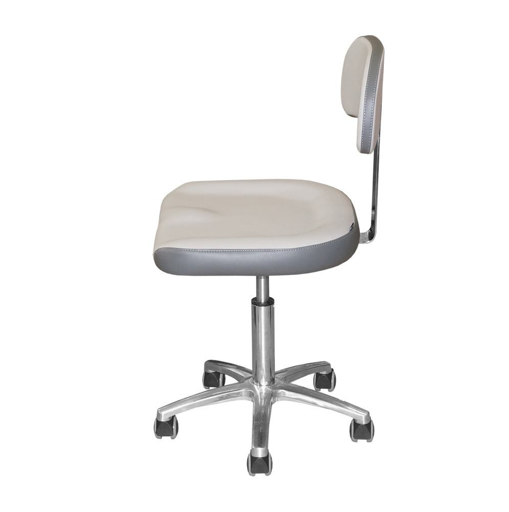 Стул мастера "Профи лайт" с широким и удобным сиденьем анатомической формы, которое обеспечивает дополнительный комфорт для работы мастера. Основание - пятилучье из алюминия с прорезиненными колесиками.