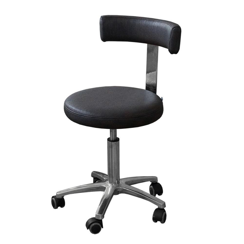 Стул для мастера с маленькой спинкой и удобной регулировкой высоты поможет мастеру чувствовать себя комфортно во время работы. Основание - пятилучье из алюминия с прорезиненными колесиками.