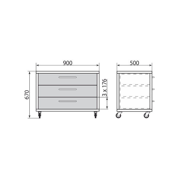 Тумба подкатная 900*500*670 мм, PR-3-007-11