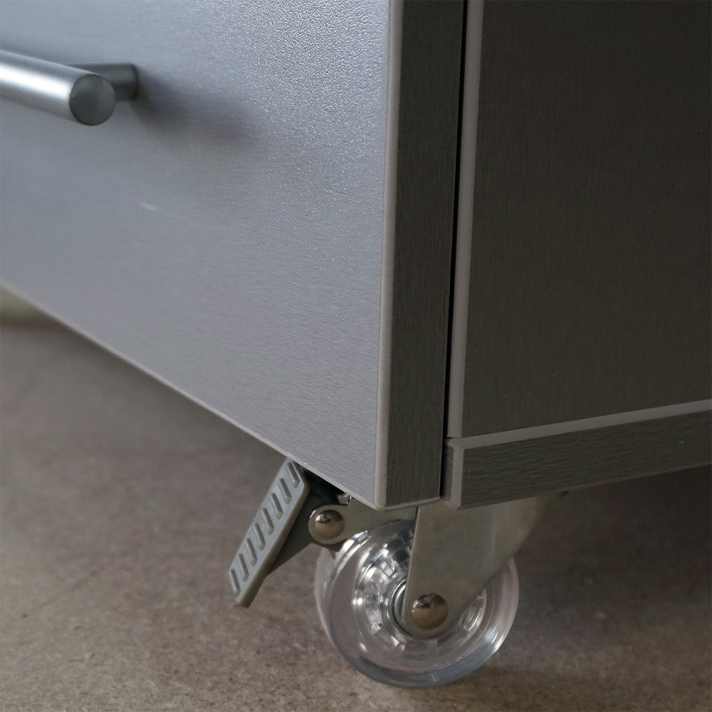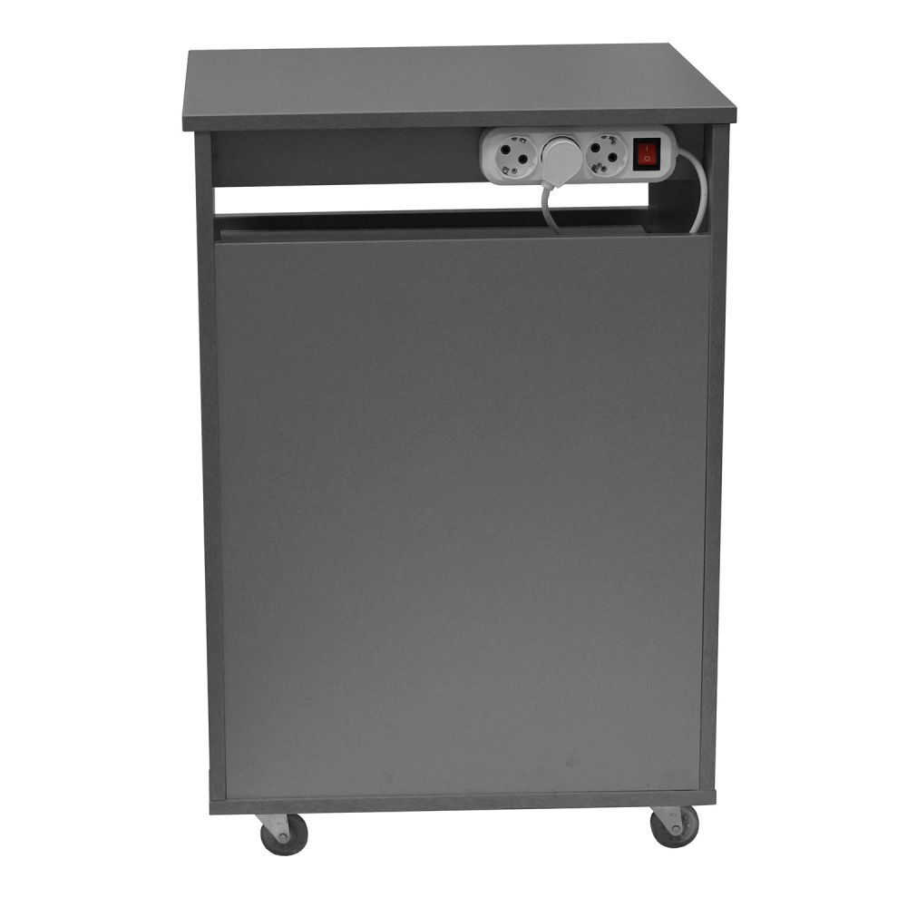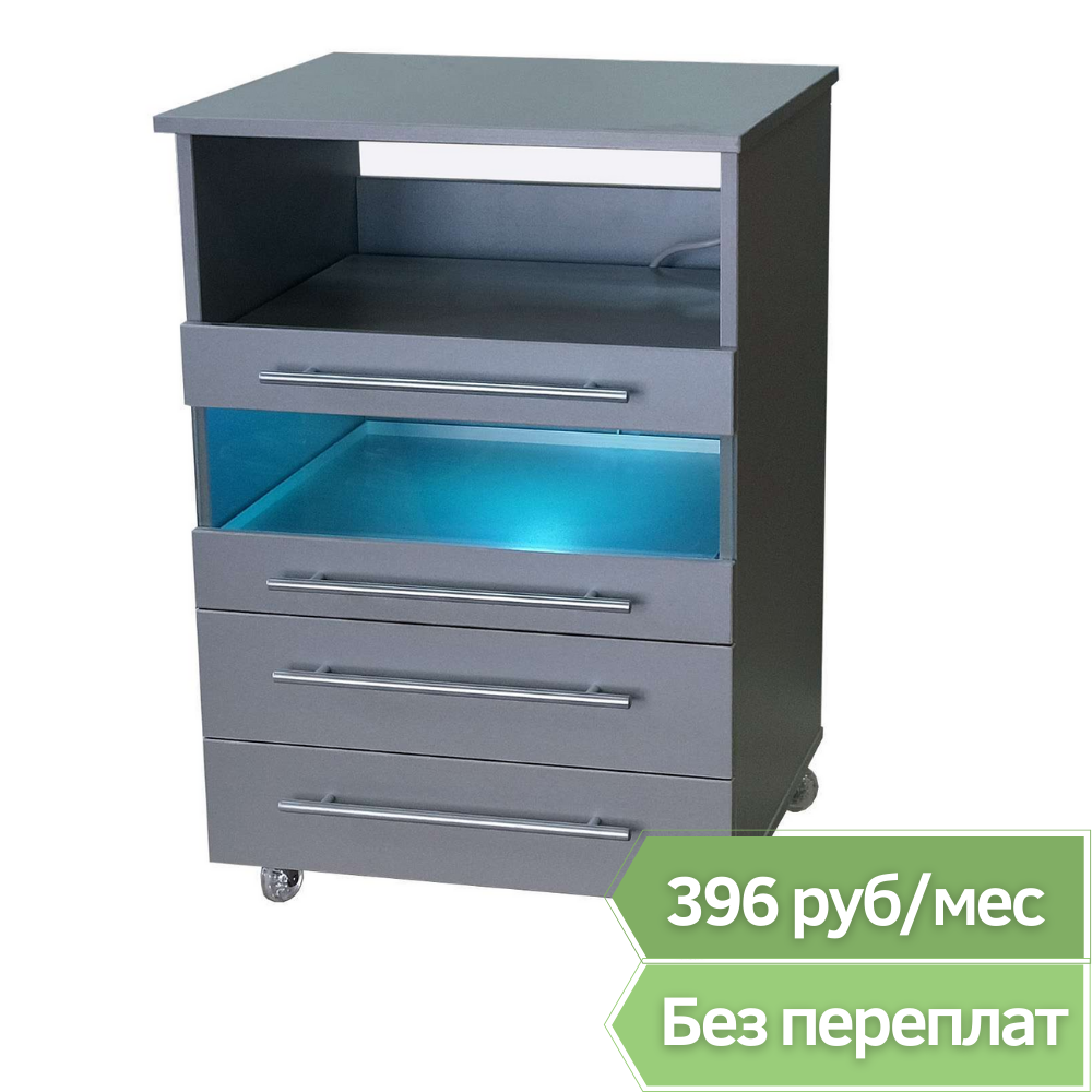 Универсальная тумба может использоваться как в педикюрном, так и в косметологическом кабинете. Средний ящик тумбы оснащен УФ-модулем с бактерицидной лампой для стерилизации инструмента. Включение и выключение лампы происходит автоматически при открытии и закрытии ящика.