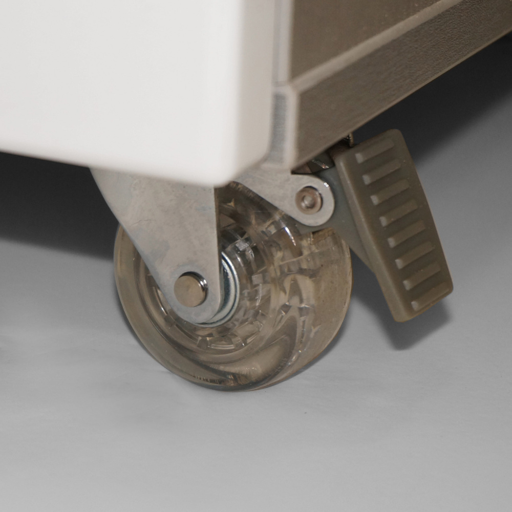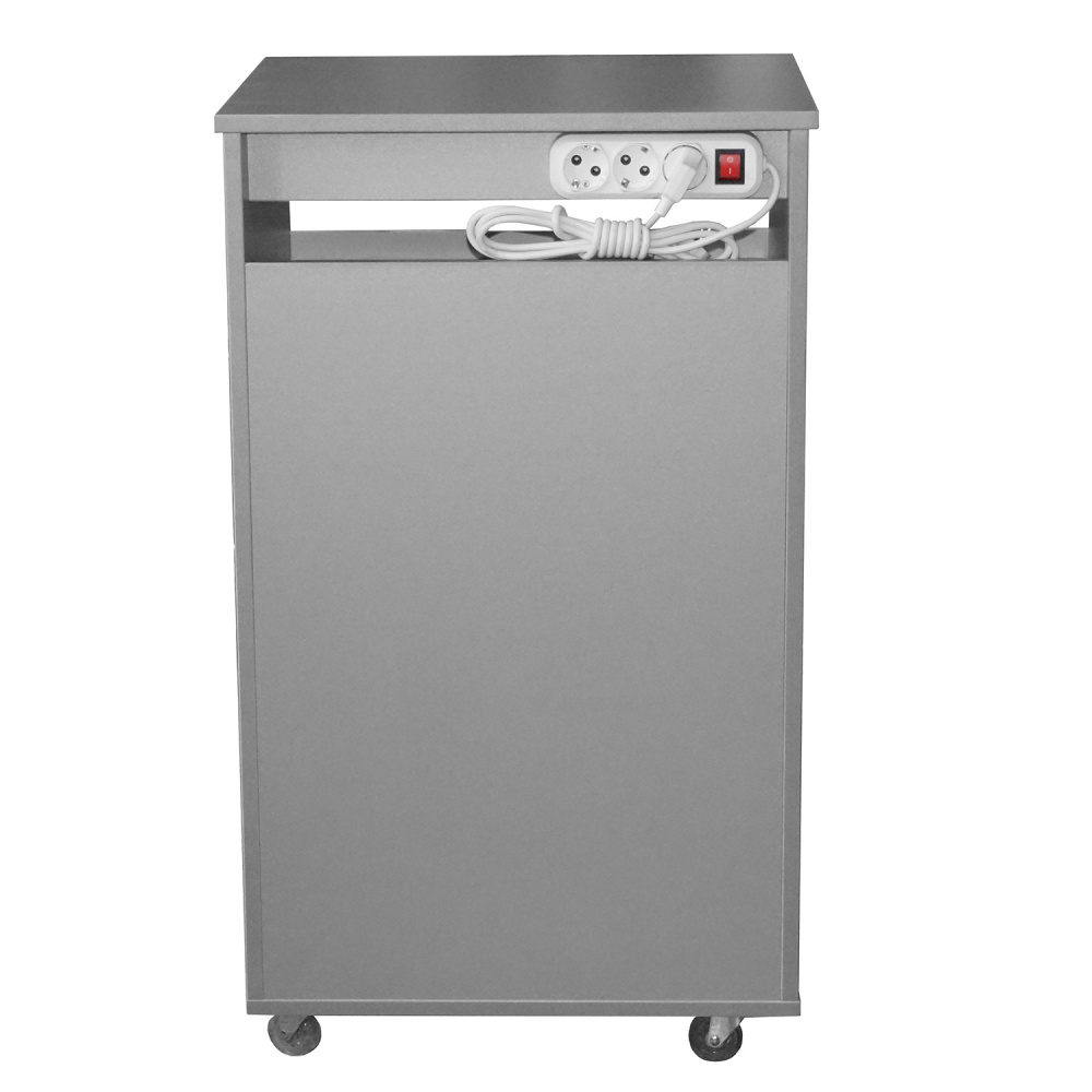 Универсальная тумба может использоваться как в педикюрном, так и в косметологическом кабинете. Средний ящик тумбы оснащен УФ-модулем с бактерицидной лампой для стерилизации инструмента. Включение и выключение лампы происходит автоматически при открытии и закрытии ящика.