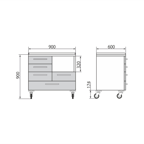 Колесные опоры: позволяют передвигать изделия в помещении с минимальным усилием. Выполнены из специального синтетического материала, не оставляющего следов на напольном покрытии.